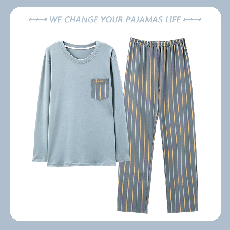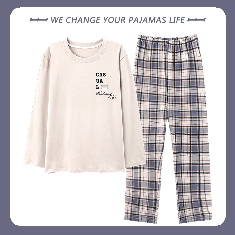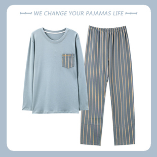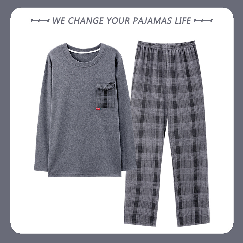 睡衣春秋款 套头家居服套装 纯棉长袖 可外穿秋季 休闲大码 北极绒男士