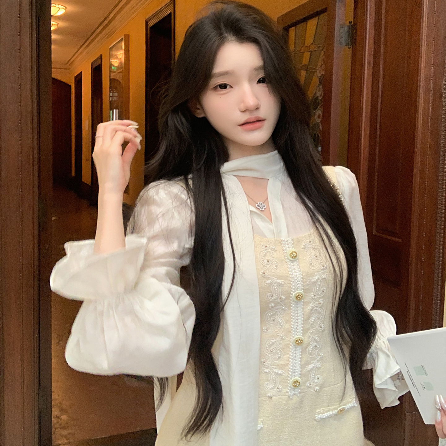 奶黄色小香刺绣背心裙女收腰显瘦短裙 泰晤士信笺 YYW汪澜 妹妹