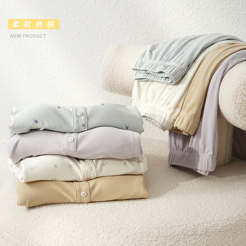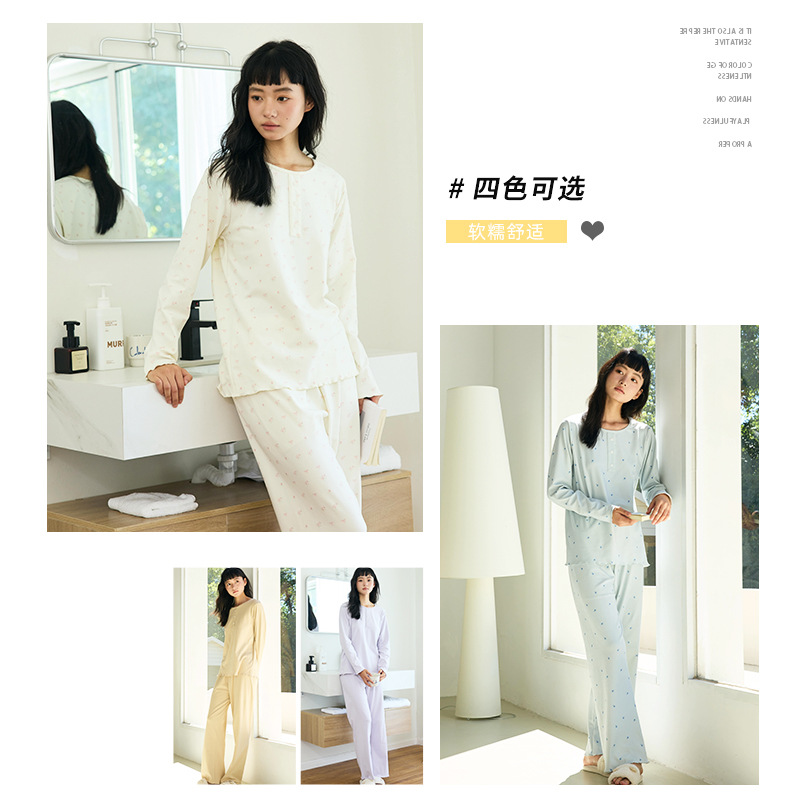 纽扣带胸垫舒适印花软糯睡衣套装 2025春秋女纯色长袖 服饰 NOME