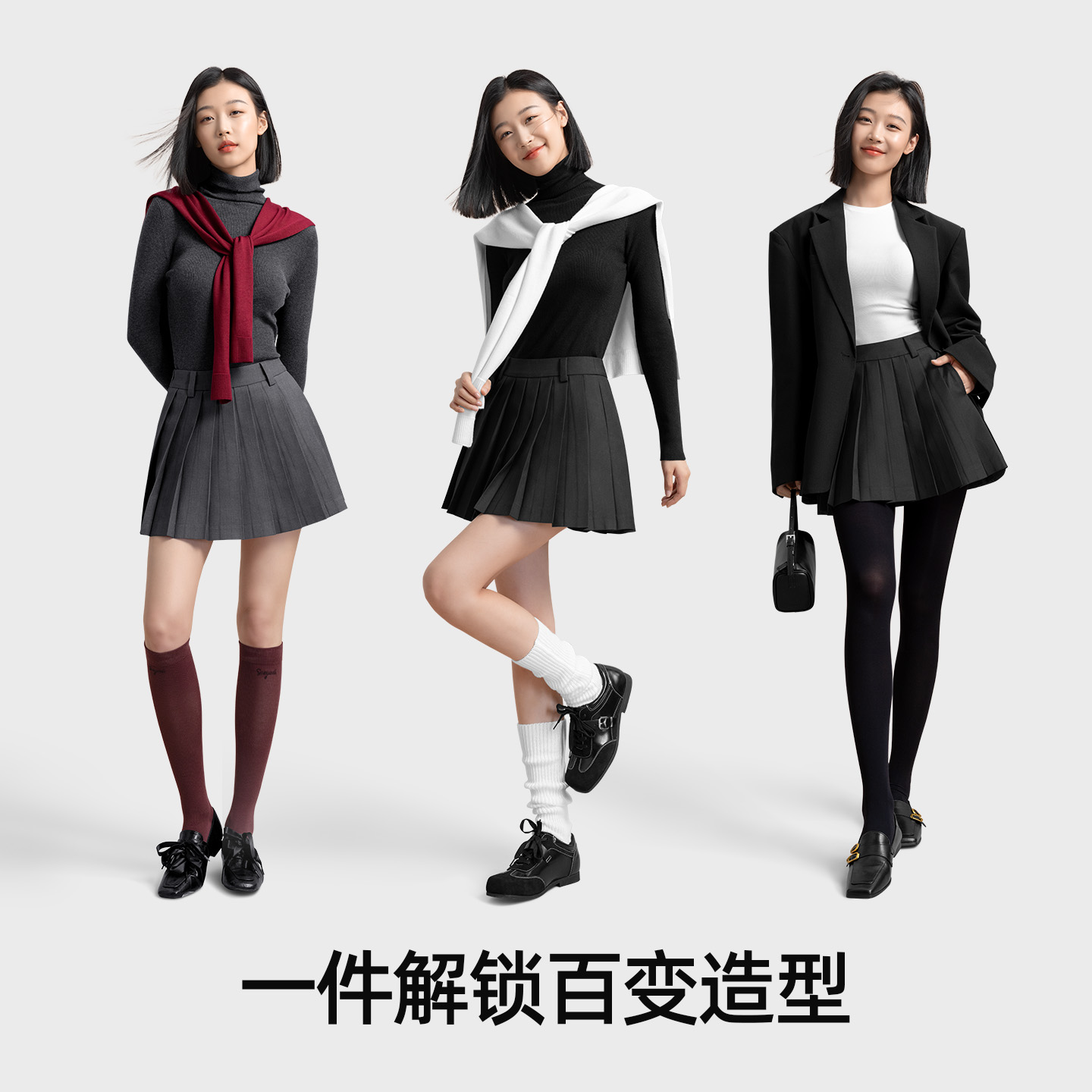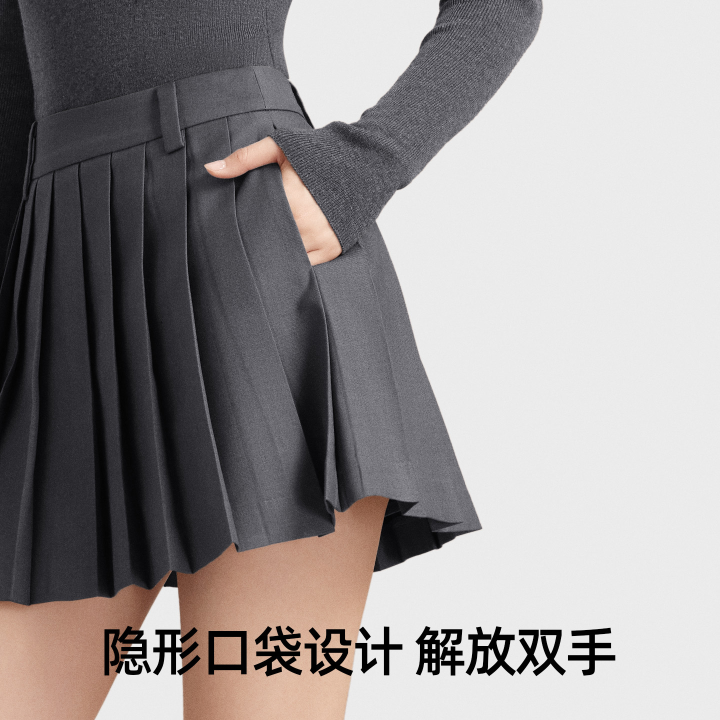 短裙套装 小野和子see yeah百褶半身裙女秋冬中高腰A字灰色西装