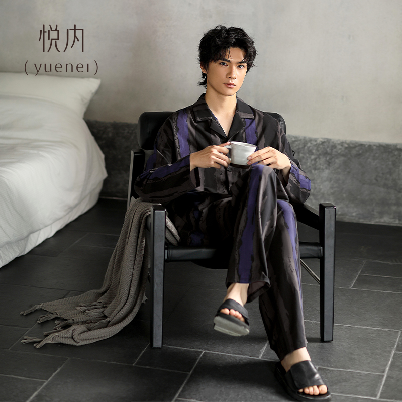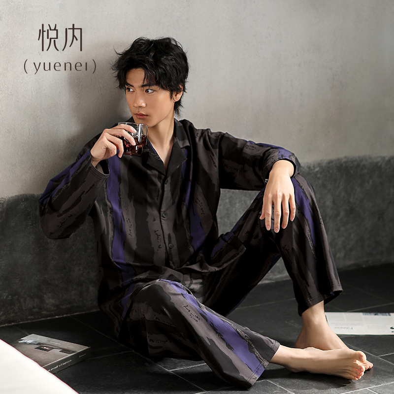 纯棉长袖 秋季 家居服男款 时尚 悦内睡衣男士 休闲复古套装 春秋款