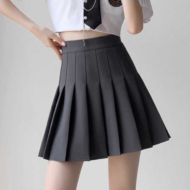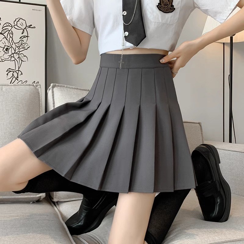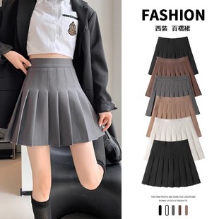 2024秋冬新美式 灰色百褶裙女半身裙学院风jk短裙子高腰显瘦a字裙