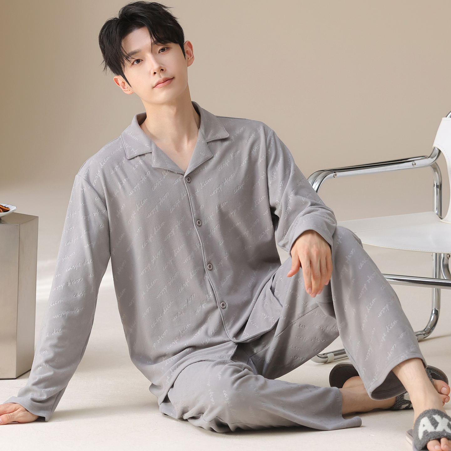 加厚保暖可外穿家居服套装 宜而爽德绒睡衣男士 大码 磨毛长袖 秋冬季