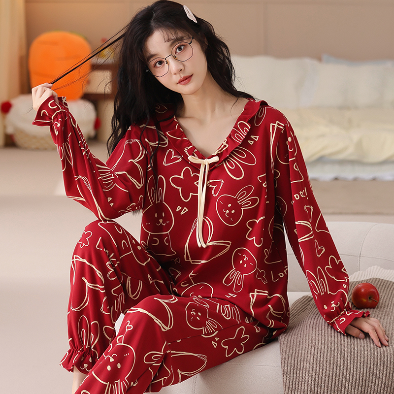 带胸垫纯棉红色本命年兔子家居服 长袖 卡之恋睡衣春秋款 女2025新款