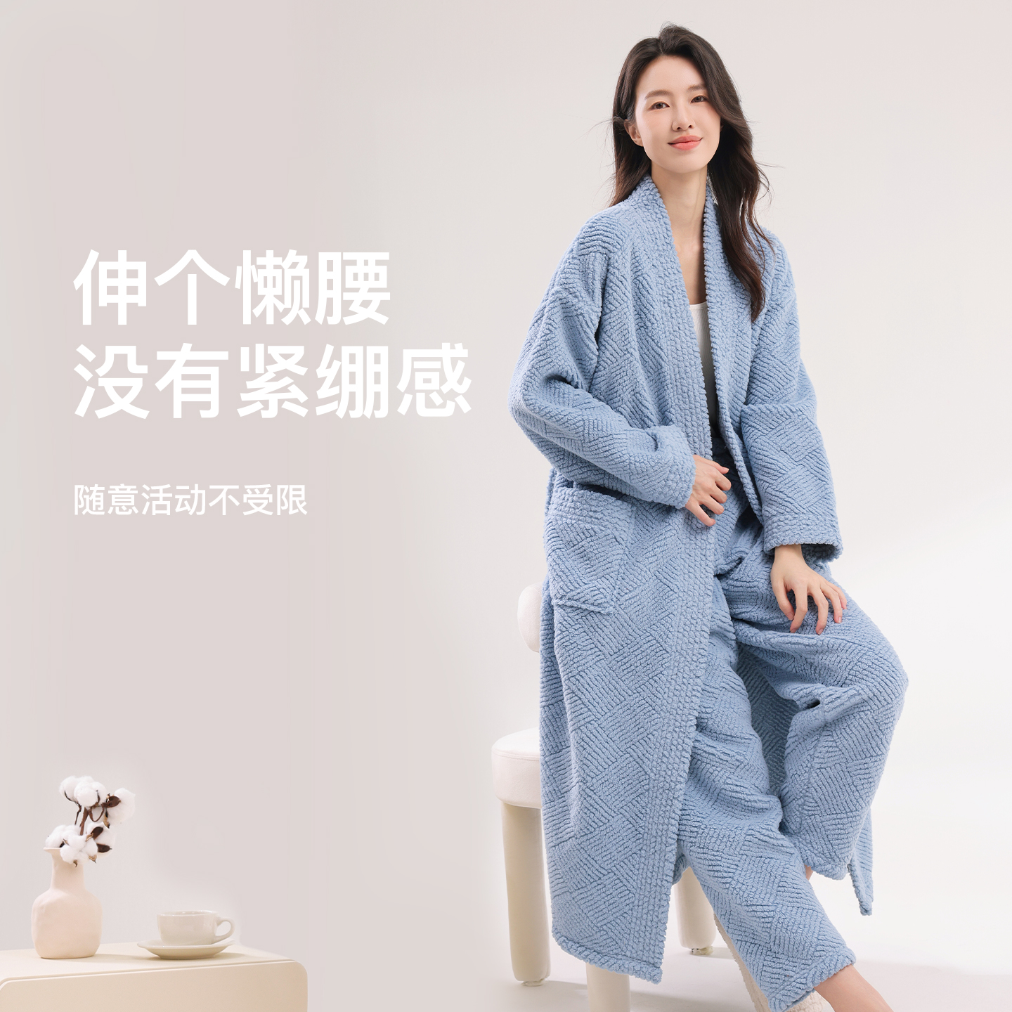 家居服 浴衣浴袍冬天套装 秋冬季 睡袍女士珊瑚绒睡衣加长加厚新款