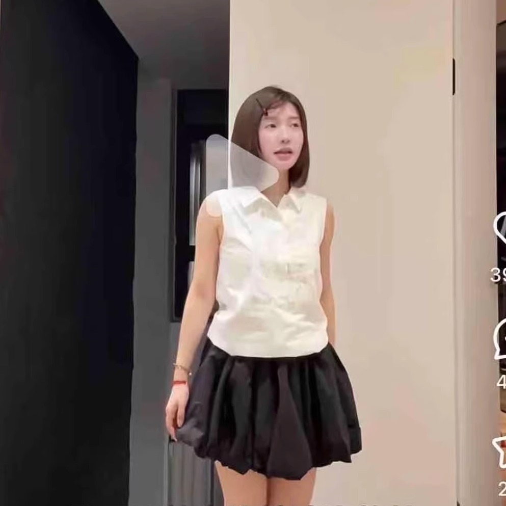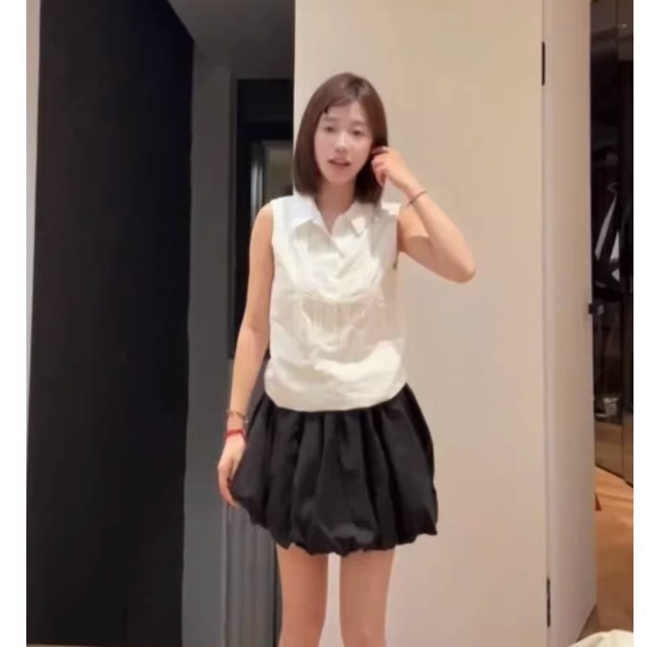 25ss宅女同款 本 新百搭高腰A字花苞短半身裙褶皱 上海高版 花一