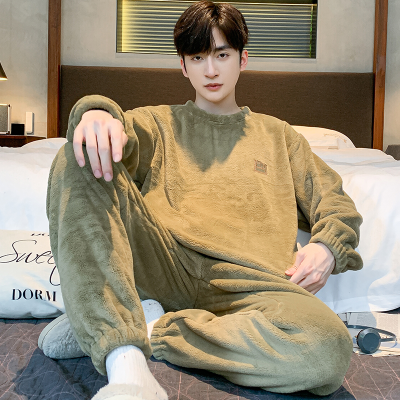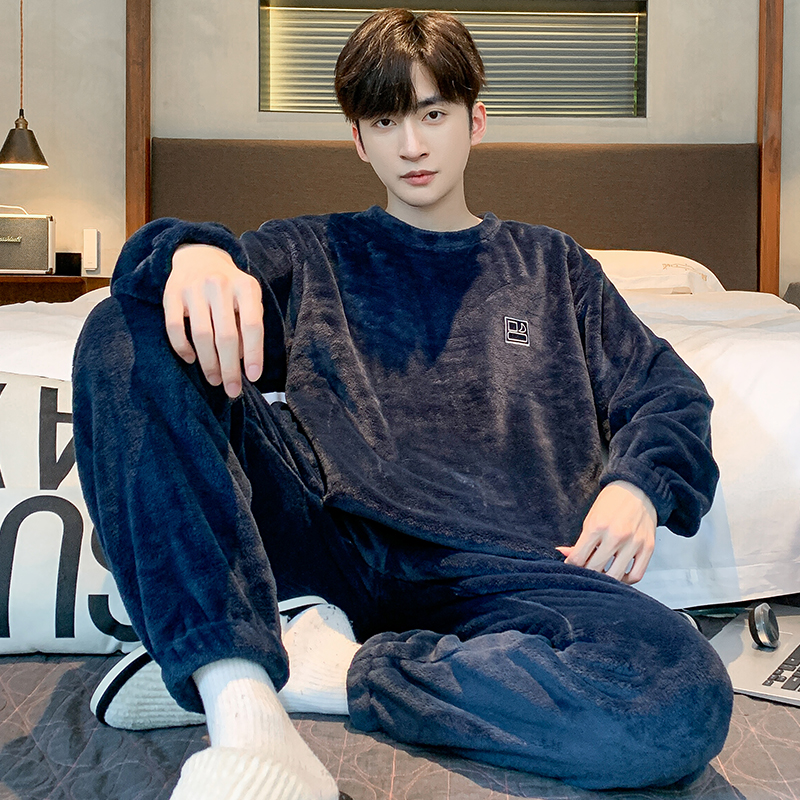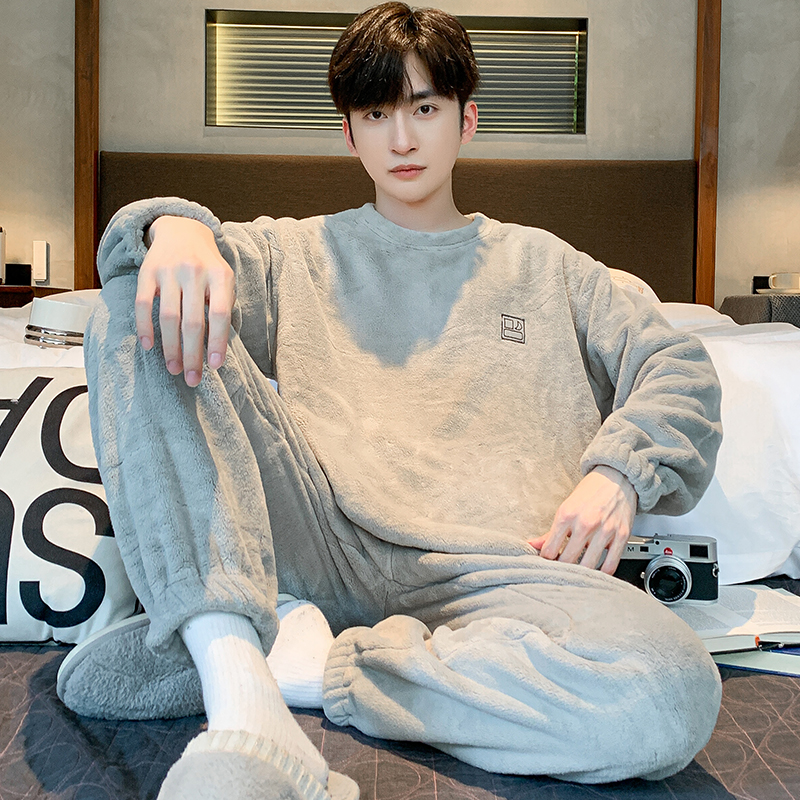 珊瑚绒加绒加厚法兰绒冬天套装 冬季 高雅秋冬 男士 芬腾可安睡衣男款