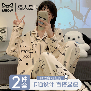 可爱卡通可外穿家居服套装 猫人带胸垫睡衣女款 长袖 春秋季 2025新款