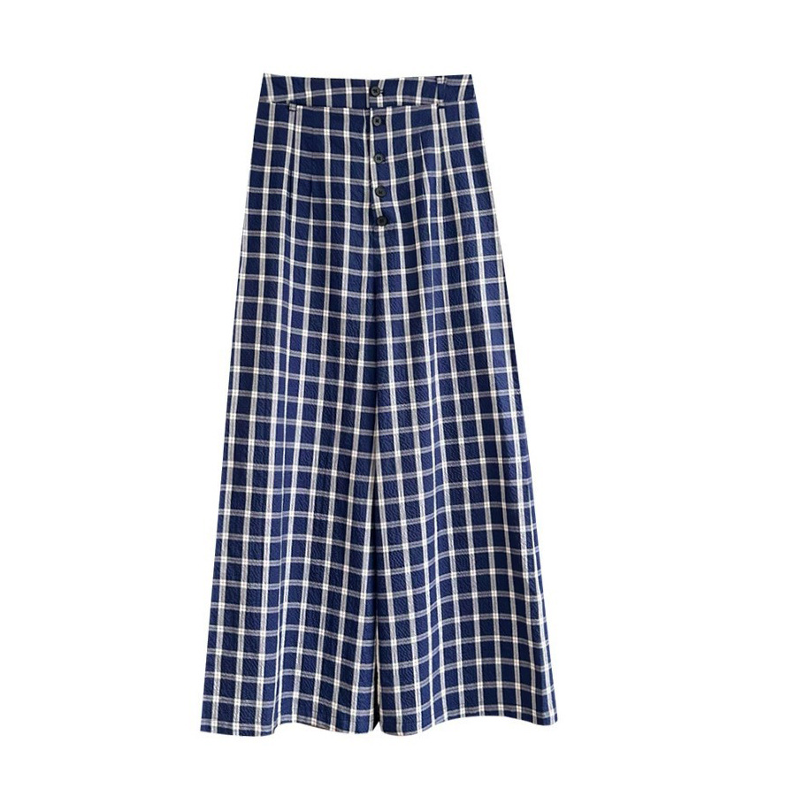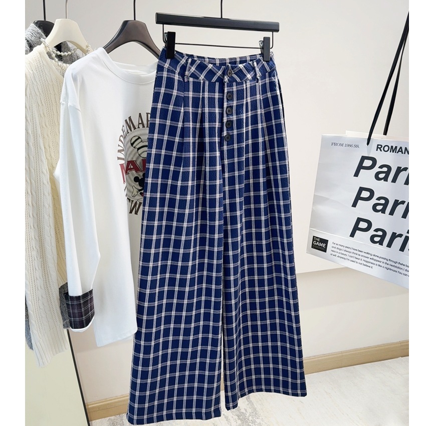 宅女同款 长裤 休闲裤 女秋冬慵懒显瘦格纹阔腿裤 宽松阔腿裤 格子裤