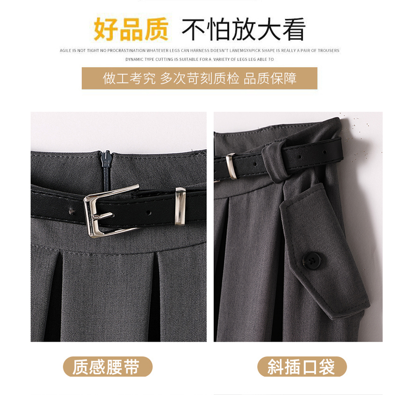 灰色百褶裙子女春夏秋高腰显瘦a字半身长裙设计感大摆西装 伞裙潮