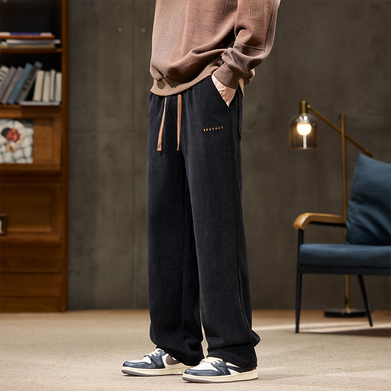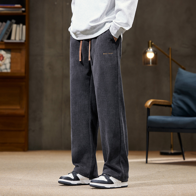 男士 加绒灯芯绒春秋卫裤 秋冬季 工装 直筒宽松长裤 雪尼尔运动裤