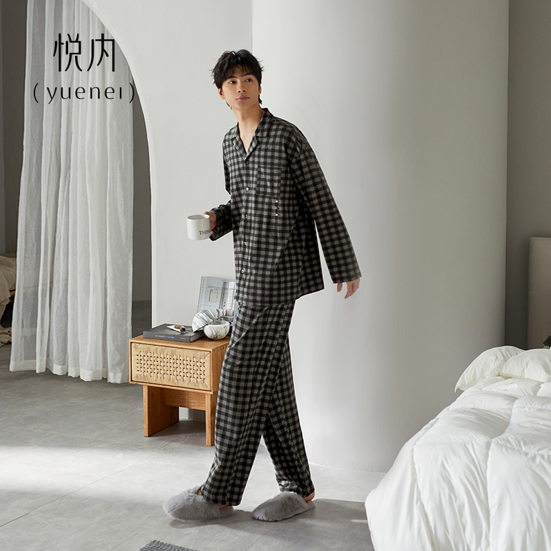 春秋款 可外穿格子高级感套装 秋季 纯棉家居服男款 长袖 悦内睡衣男士