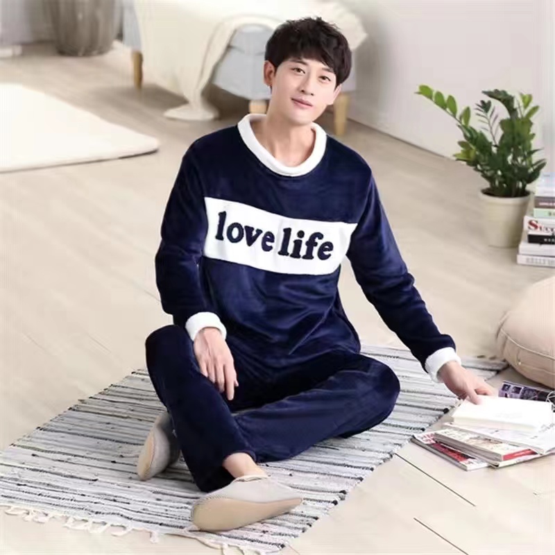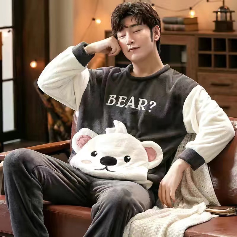 家居服冬天套装 法兰绒加厚加绒珊瑚绒卡通睡衣男款 睡衣秋冬季 男士