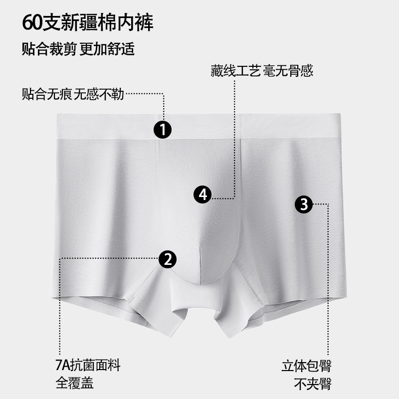 60支纯棉里裆高端新疆长绒棉男生内裤 浠祺服饰A类棉男士 无痕内裤