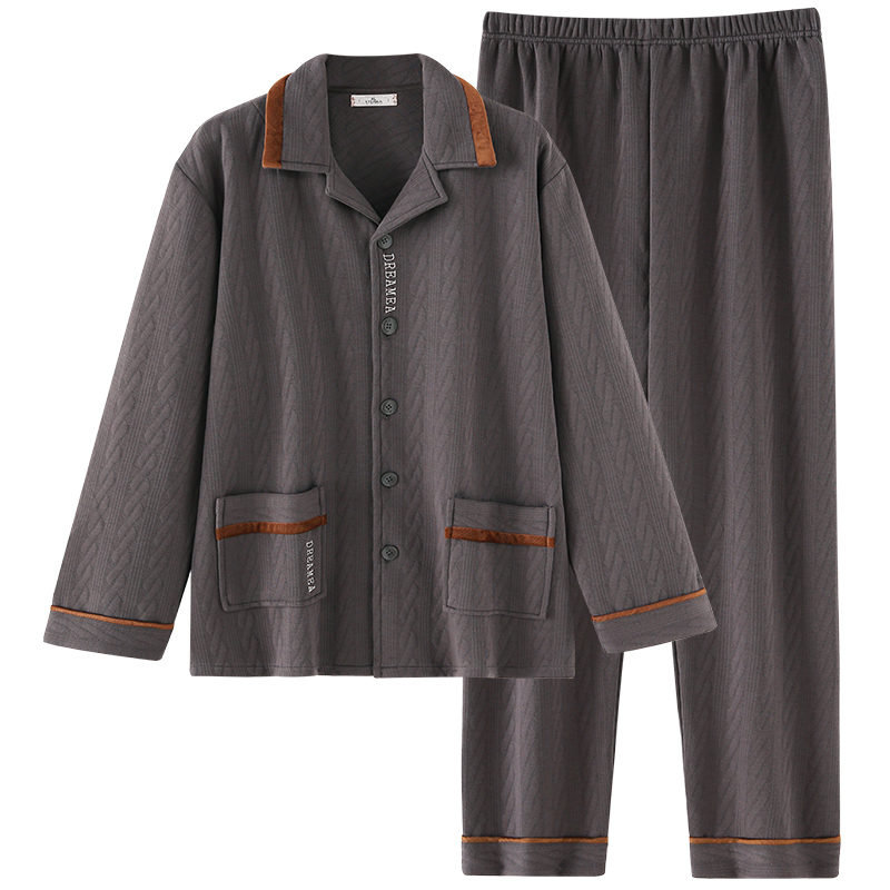 春秋款 男款 加厚纯棉夹层秋冬款 夹棉冬季 空气棉家居服 薄款 睡衣男士