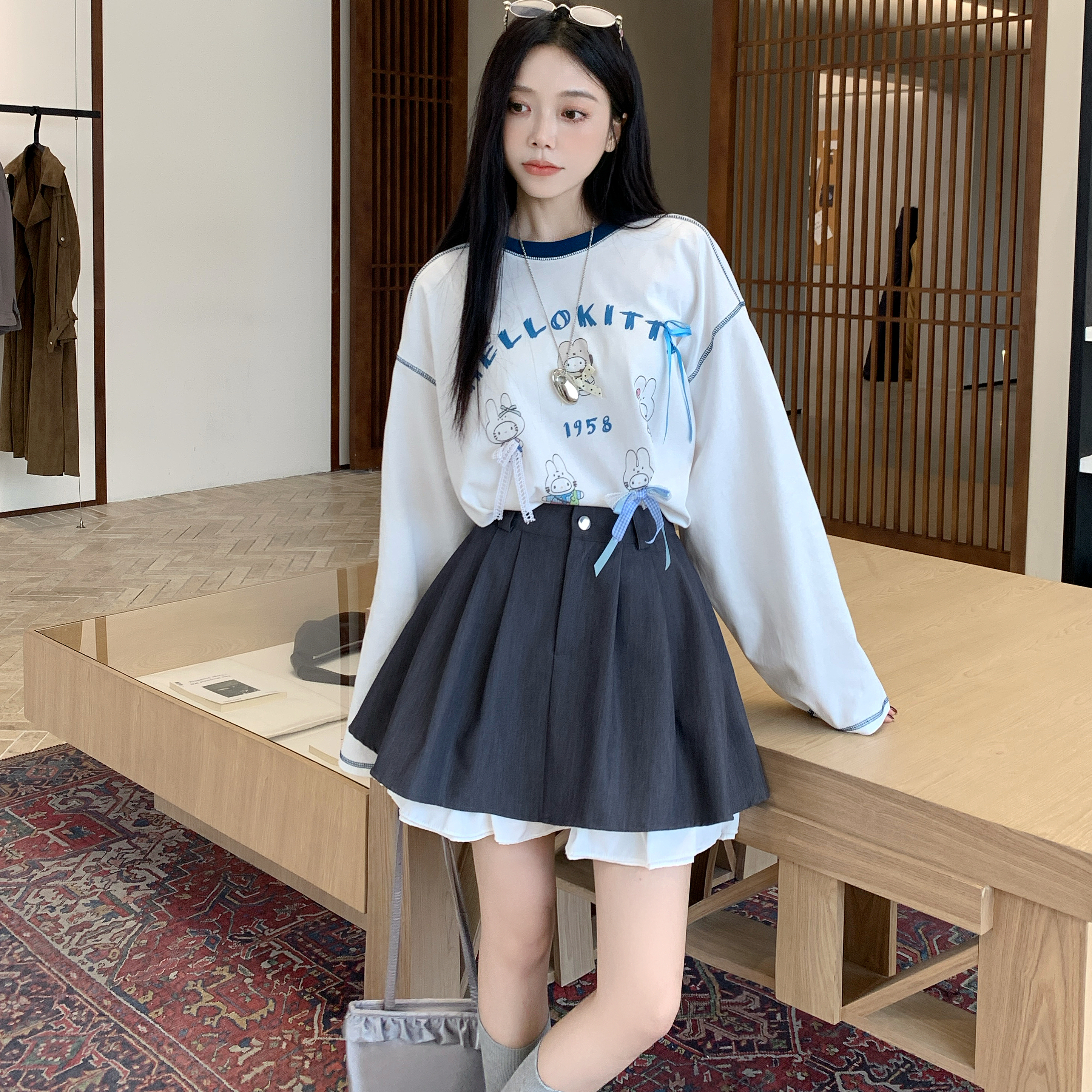 灰色百褶裙女秋季 高腰复古减龄短裙设计感学院风a字半身裙 大码