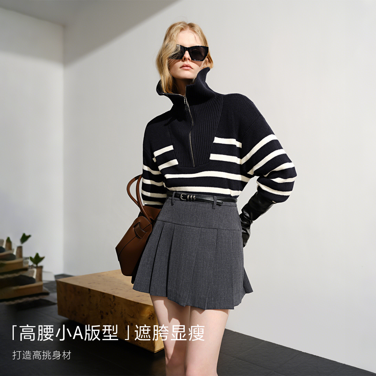 新款 ONLY2025秋季 舒适亲肤显瘦A字百褶半身裙女 新派学院系列