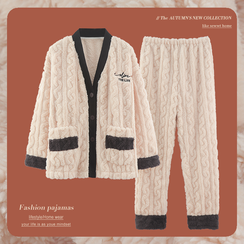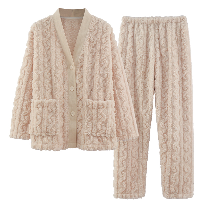 加厚加绒保暖法兰绒家居服冬天套装 北极绒冬季 珊瑚绒睡衣女秋冬款