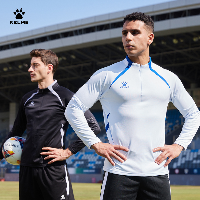 加绒足球训练服跑步运动卫衣 秋冬季 KELME卡尔美半拉链长袖 T恤男款