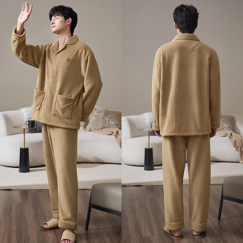加绒加厚保暖珊瑚绒家居服套装 轩靓 冬季 法兰绒睡衣男士 抗静电