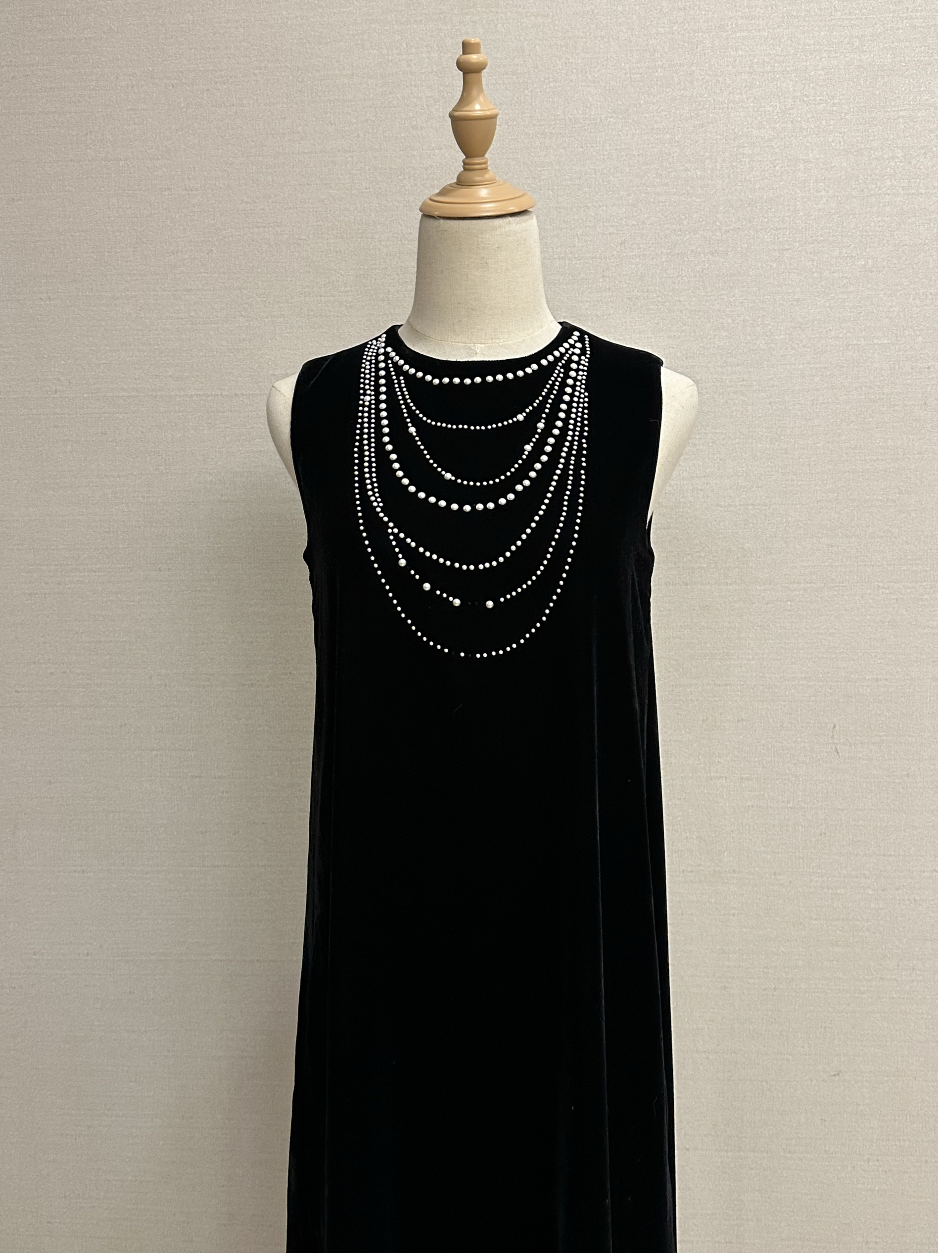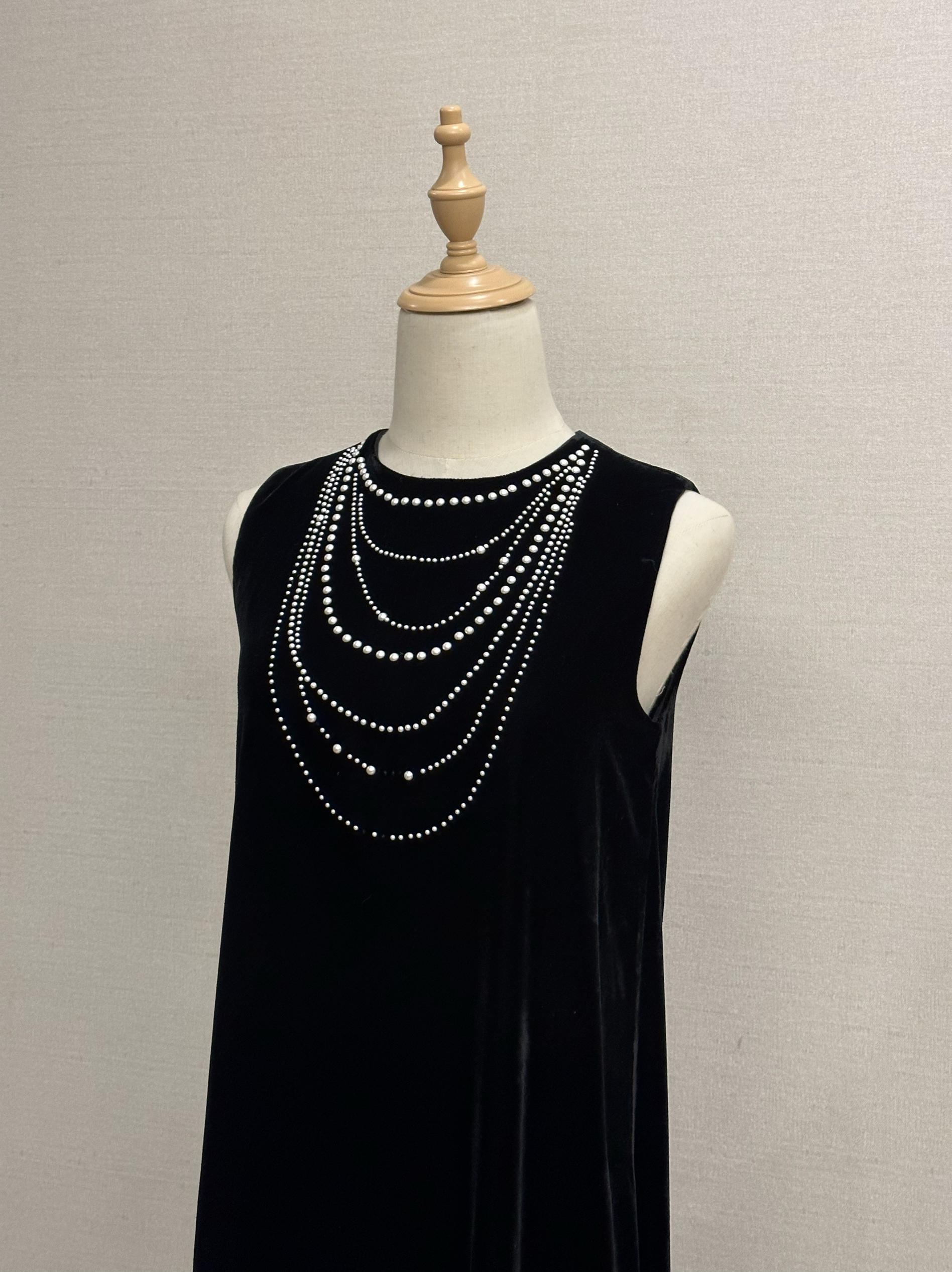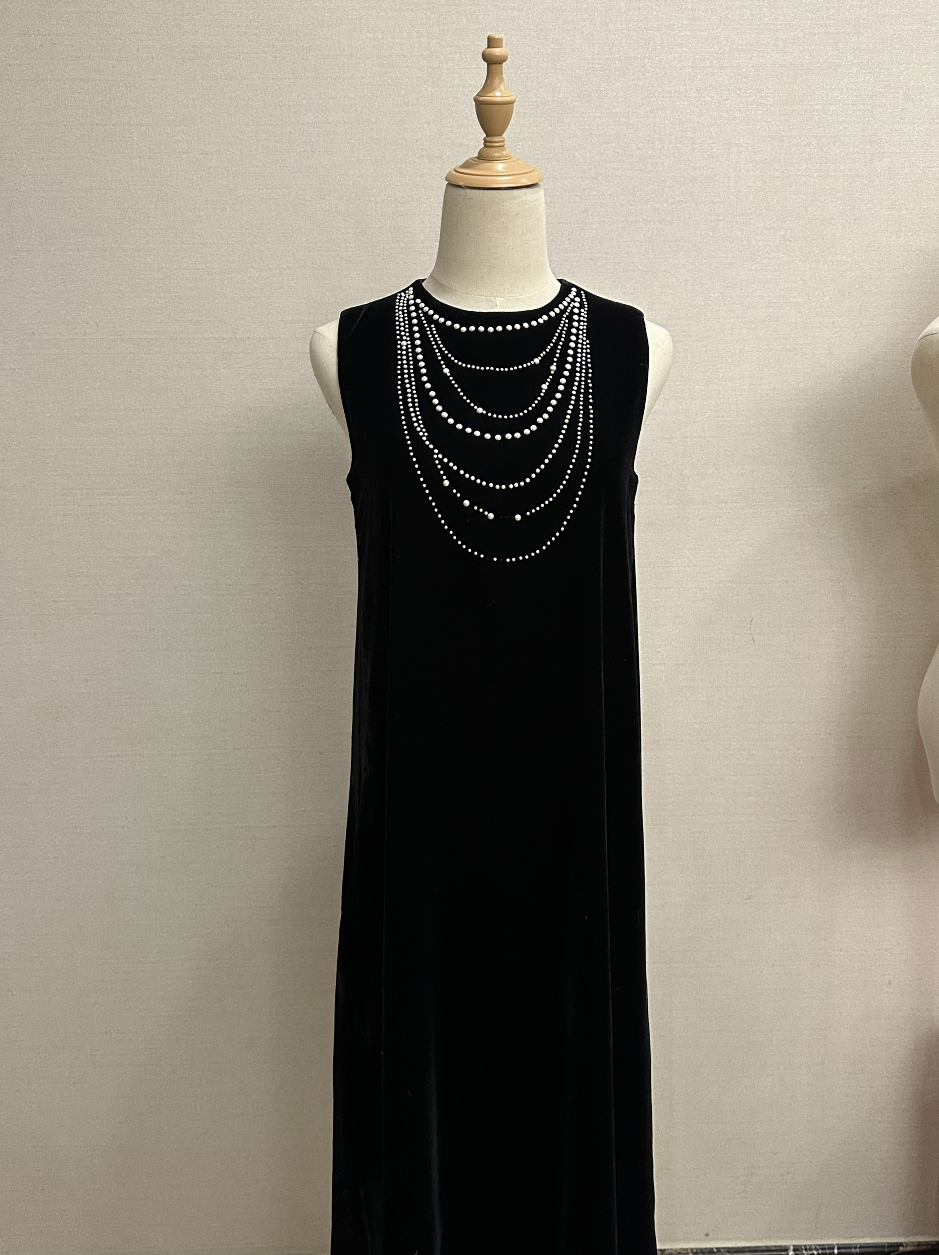 华丽系列礼服裙 时髦女士手工珍珠烫钻丝绒长裙 真丝醋酸 宅女同款