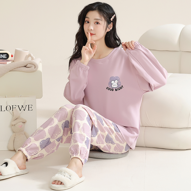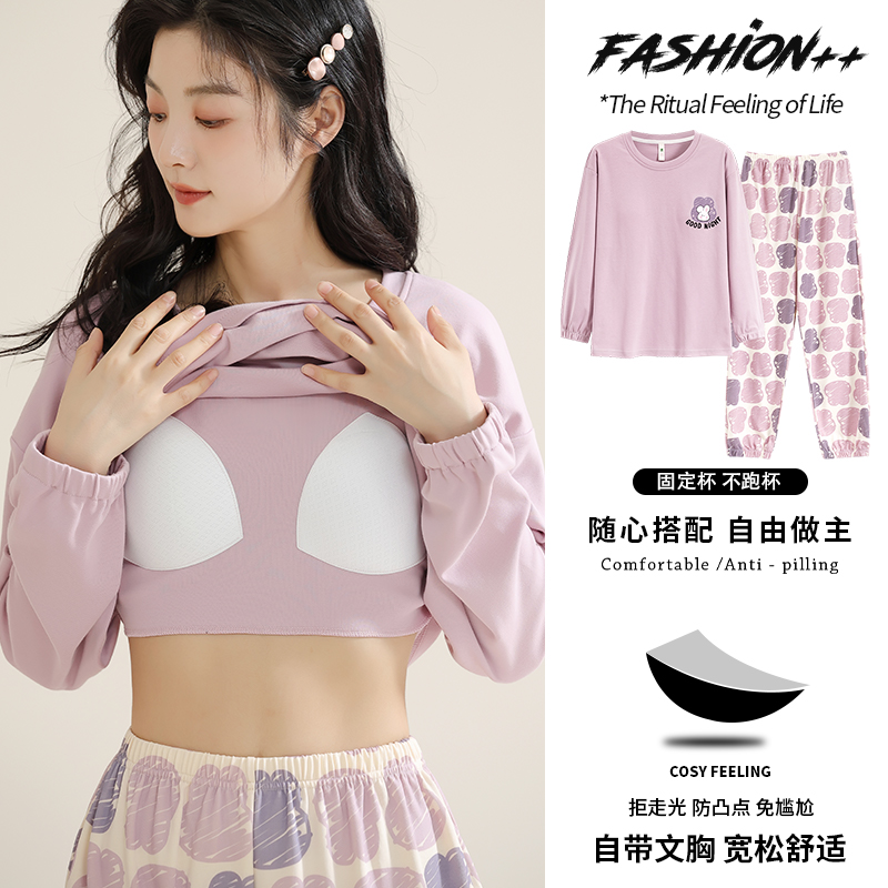 可外穿家居服套装 2025年新款 带胸垫秋冬款 纯棉长袖 睡衣女士春秋款