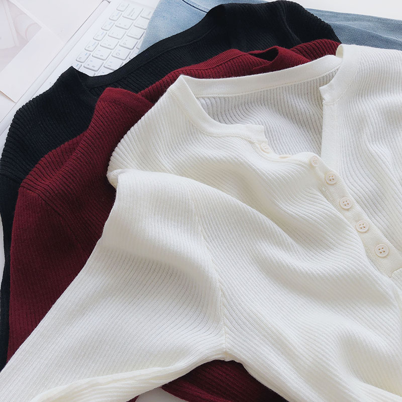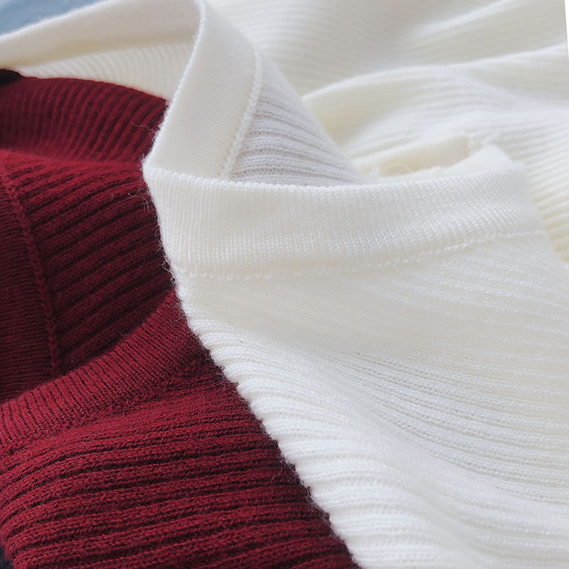 长袖 JU软糯 显瘦V领打底衫 女秋冬弹力修身 条纹毛衣 厚实羊毛针织衫
