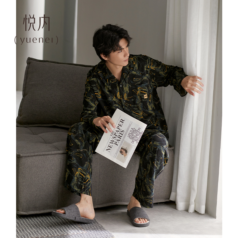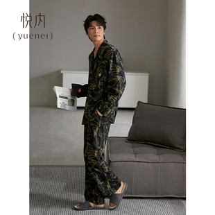 春秋款 黑色高级感老钱风套装 秋季 家居服男款 纯棉长袖 悦内睡衣男士