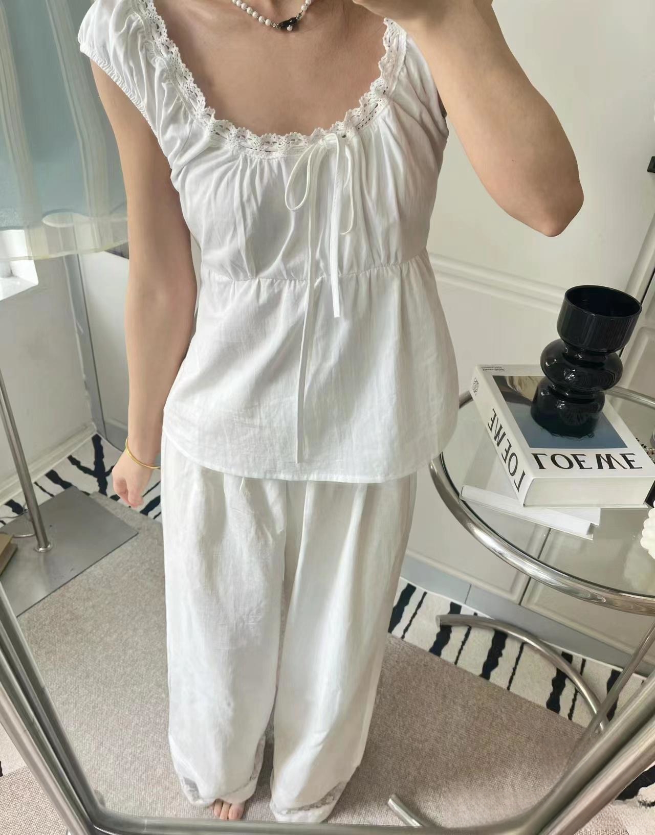 girl 高腰直筒长裤 bm宅女同款 2024新款 蕾丝花边阔腿公主裤 Brandy