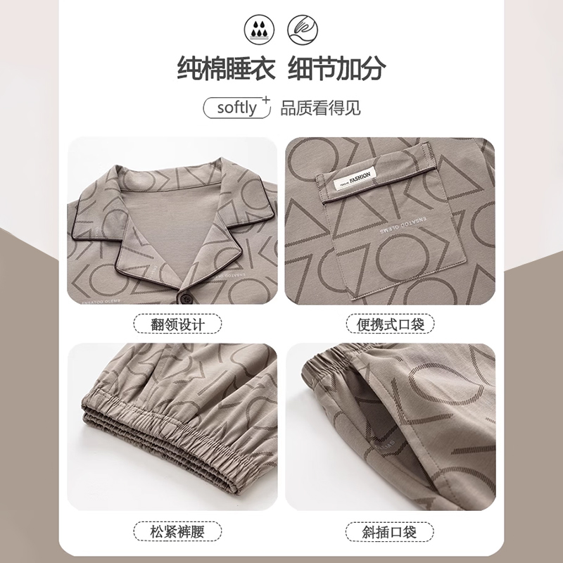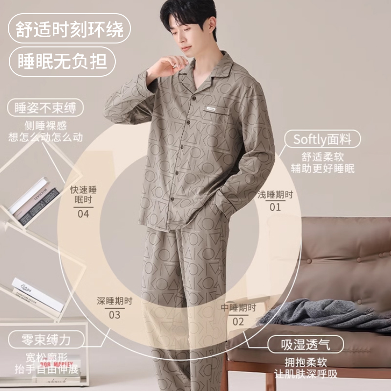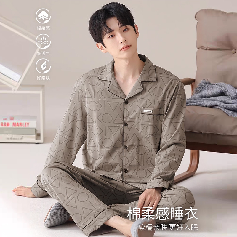 2025年长袖 新款 休闲男式 男士 家居服套装 春秋季 纯棉大码 睡衣春秋款