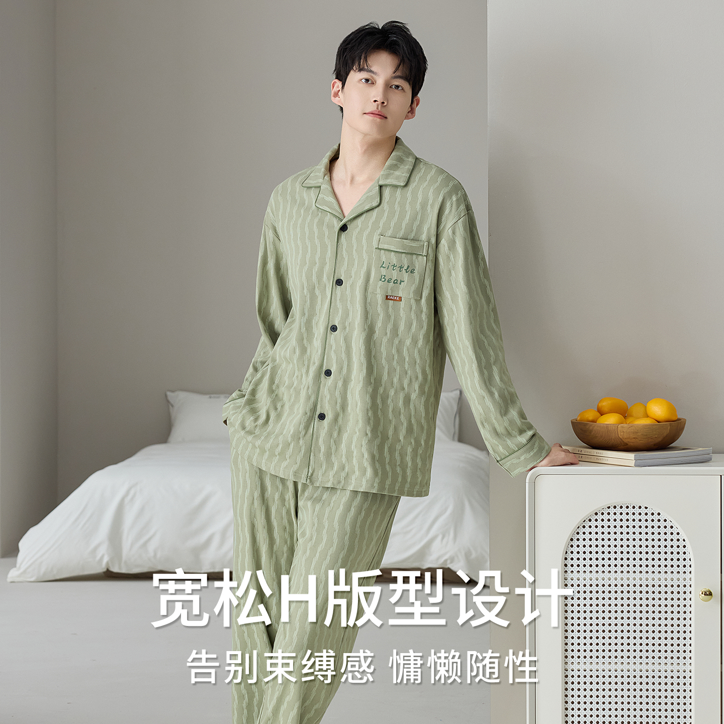睡衣春秋2025新款 套装 高级感纯棉家居服男款 长裤 长袖 都市丽人男士