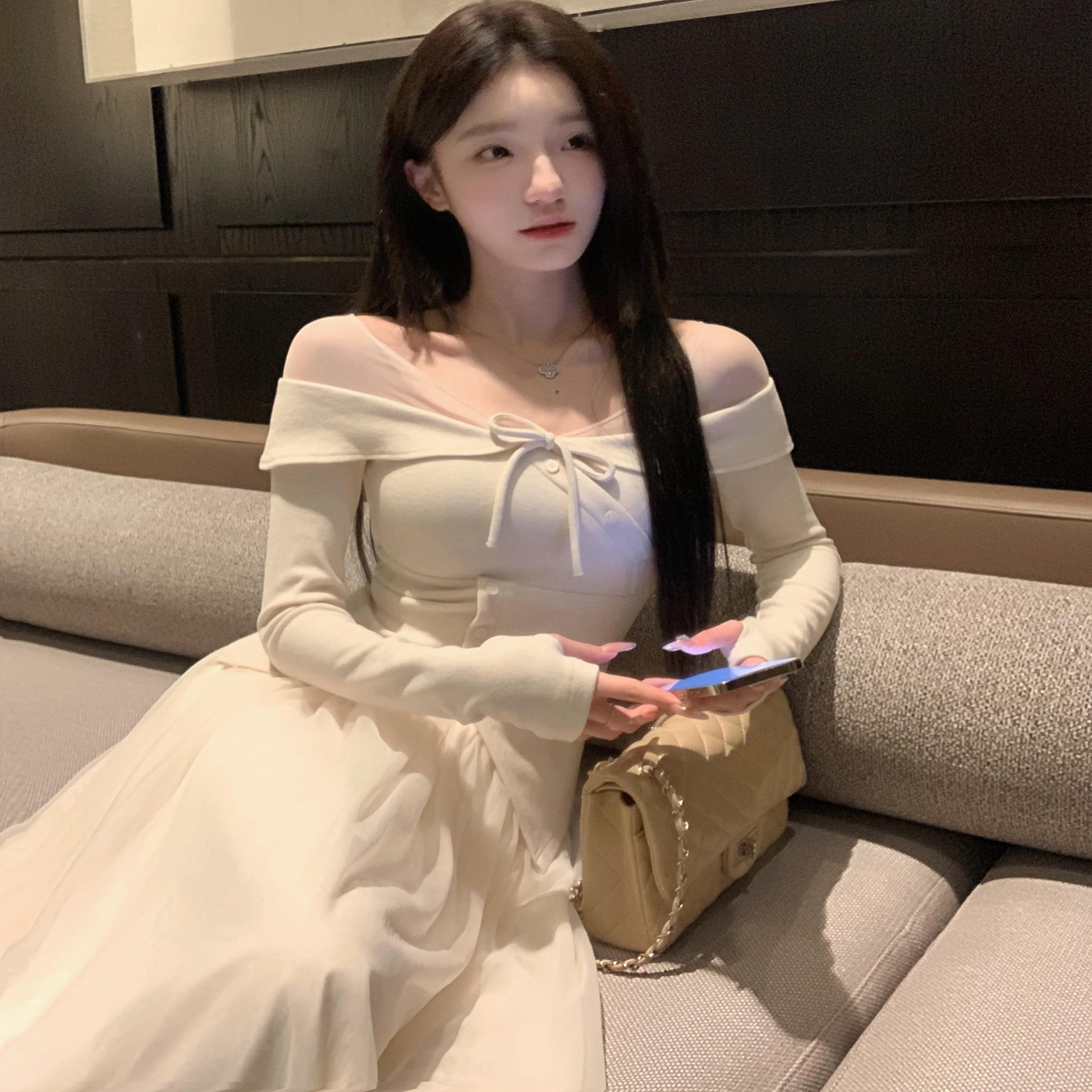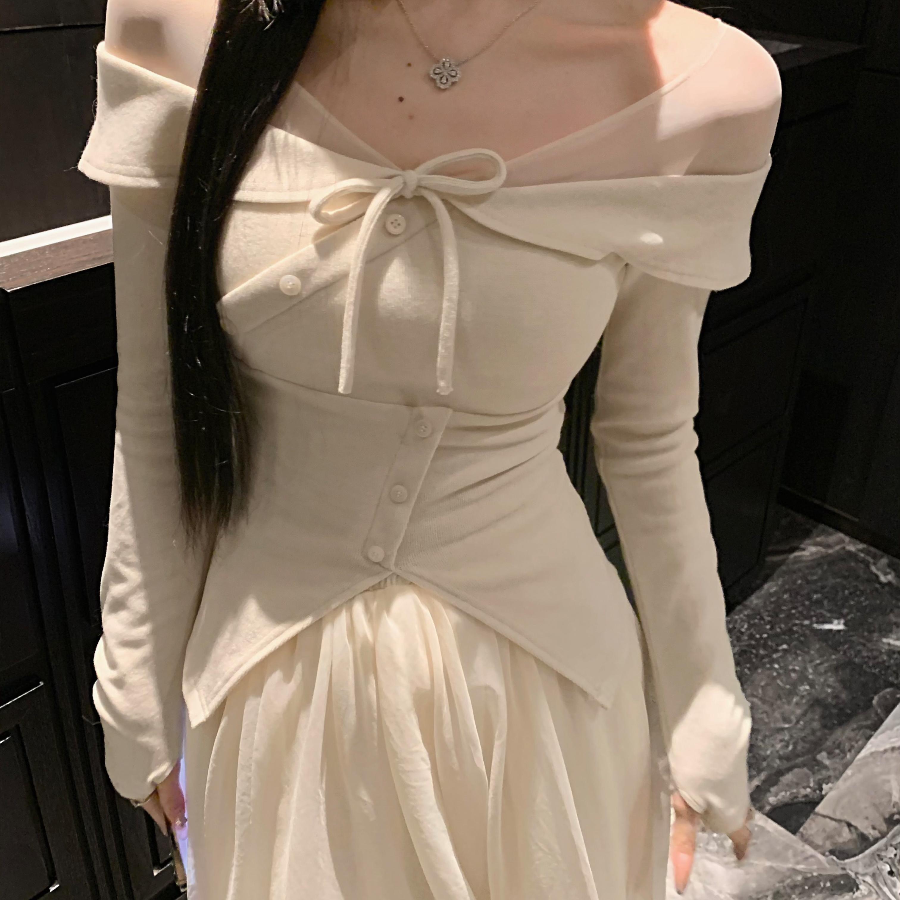 小心机微透拼接一字肩收腰针织温柔上衣 少女心事 YYW汪澜 妹妹
