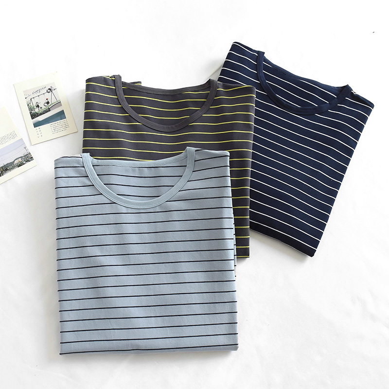 宽松套头大码 精梳纯棉男士 简约条纹家居服套装 长袖 睡衣春秋款
