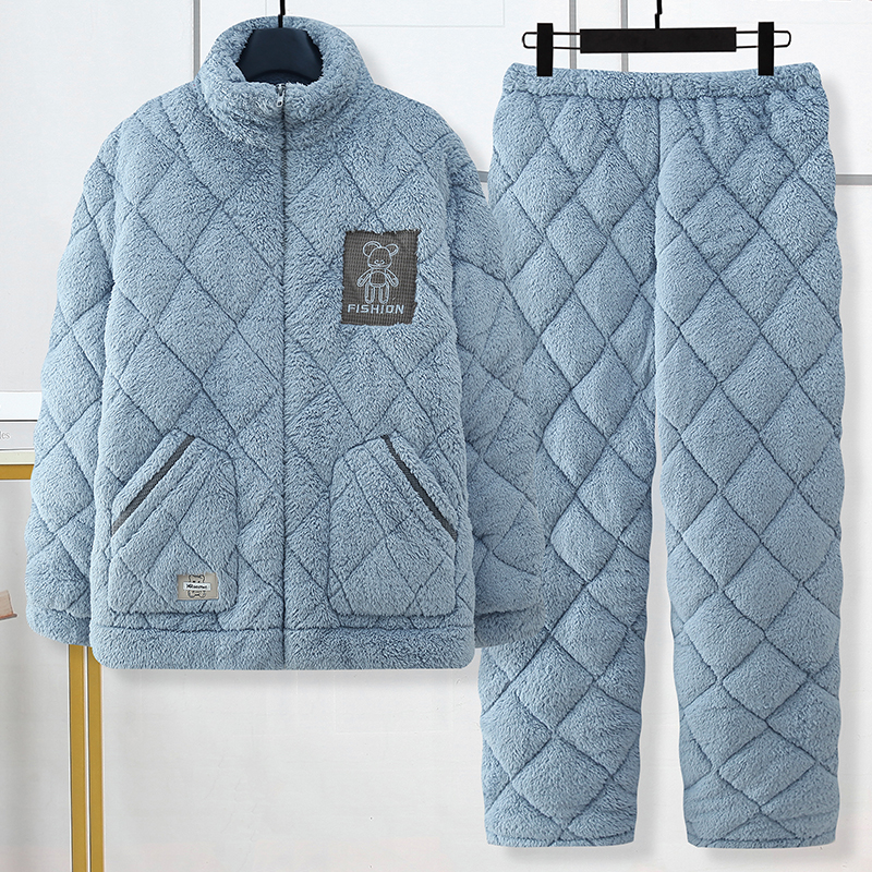三层夹棉睡衣珊瑚绒加绒加厚法兰绒家居服冬天套装 秋冬季 男士 新款