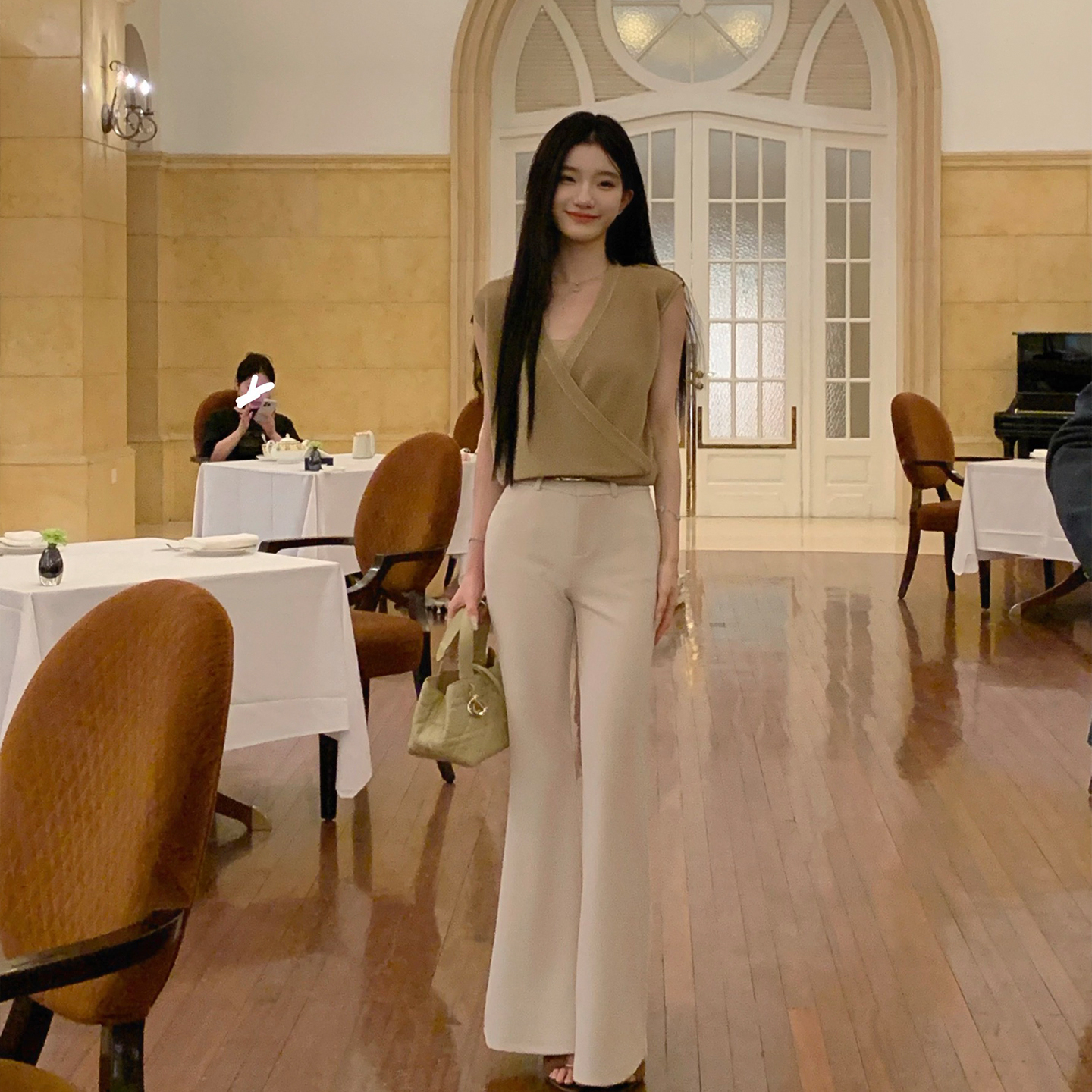 妹妹 女百搭高腰遮胯显瘦长裤 劳模裤 微喇裤 奶白色修身 YYW汪澜
