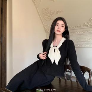 温柔半身裙套装 YYW汪澜 3色羊毛收腰针织开衫 蜜桃莫吉托 女 妹妹