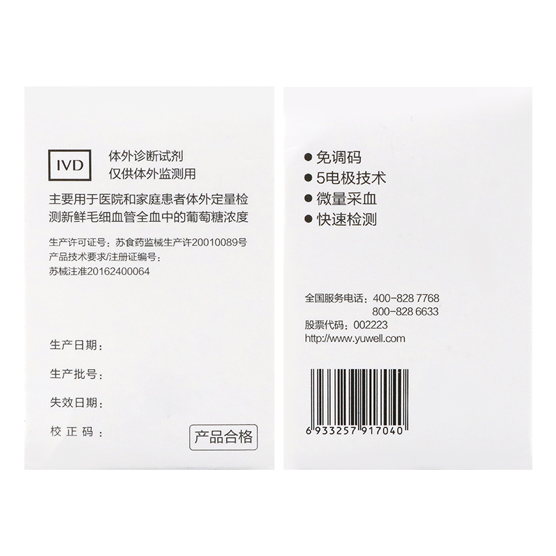 血糖仪 家用血糖测试仪高精准免调码 鱼跃血糖试纸580 590型100片装