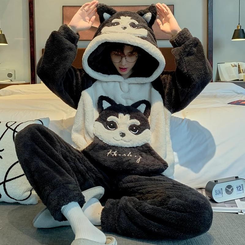 冬天套装 男士 珊瑚绒加厚加绒法兰绒卡通家居服男款 冬季 睡衣秋冬款