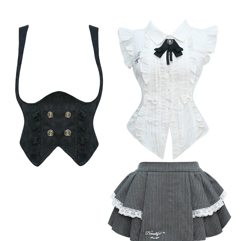 松紧腰 莉莎小姐 辣妹套装 女马甲 半裙 少女椰子 白色衬衫 学院系