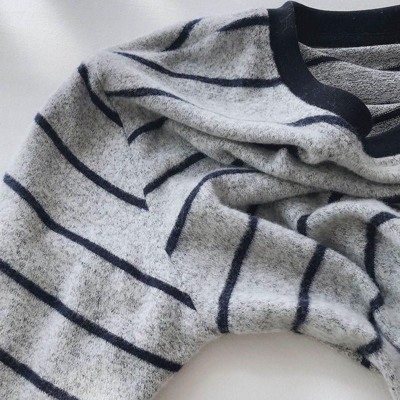 T恤 女秋冬休闲宽松百搭长袖 软绵绵羊绒手感 毛绒绒条纹针织打底衫