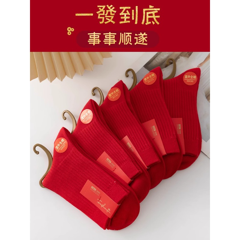 红袜子结婚情侣一对喜字女纯棉中筒袜新婚船袜大红色本命年蛇年男