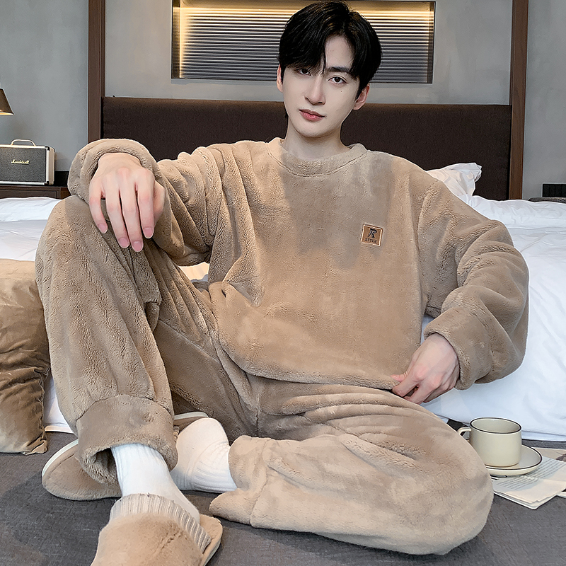 前卫家居服秋冬款 睡衣男款 珊瑚绒加绒加厚法兰绒冬天套装 男士 冬季