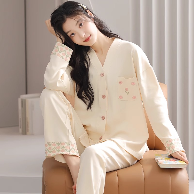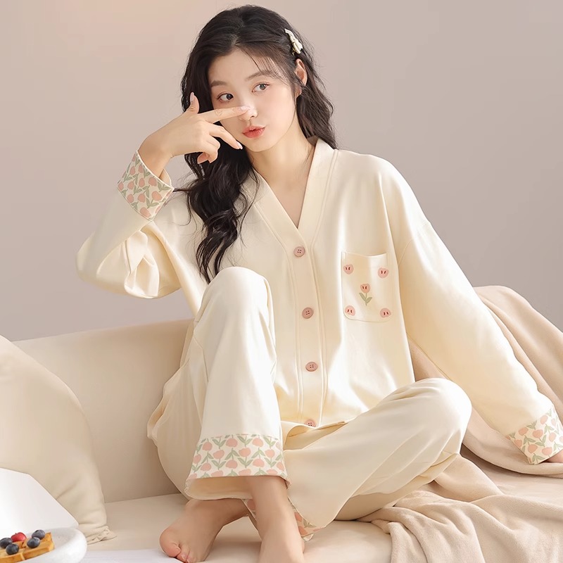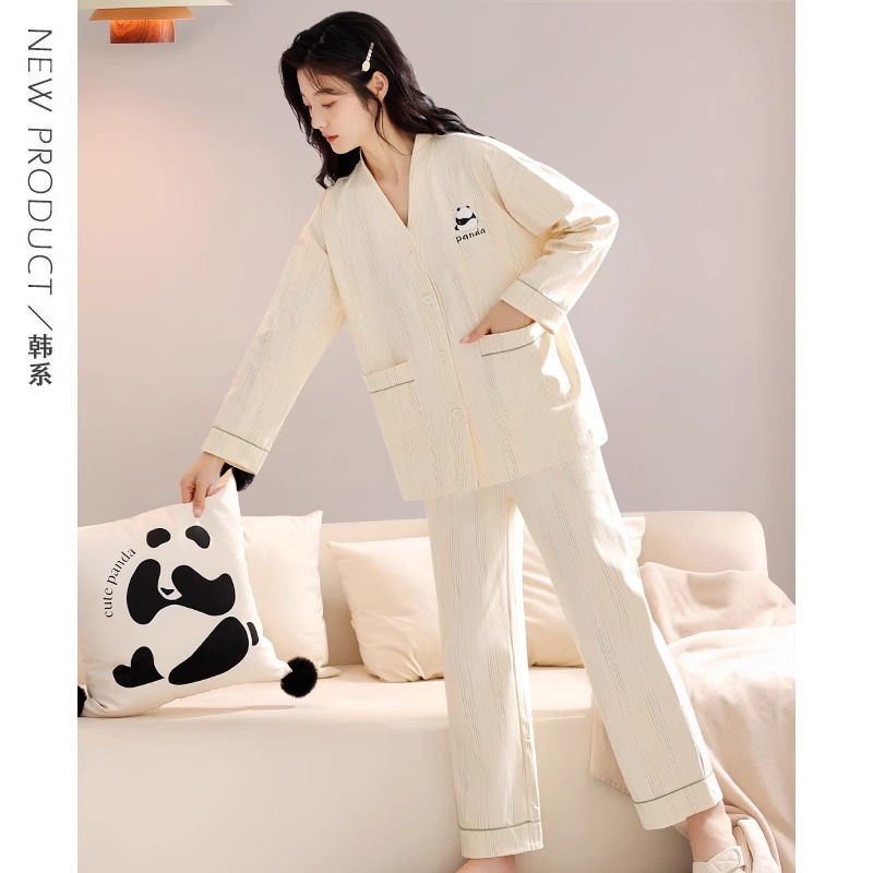 纯棉2025年新款 长袖 一体女士夏天家居服 季 带胸垫睡衣女春秋冬款