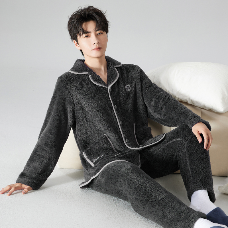 加绒加厚保暖法兰绒家居服冬天套装 冬季 秋冬款 芬腾珊瑚绒睡衣男士
