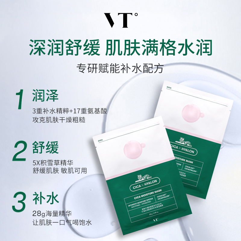 VT沁润补水面膜积雪草保湿 熬夜单盒 植萃加持膜布服帖换季
