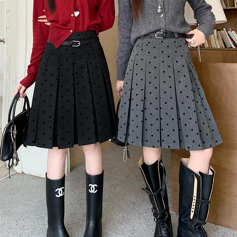 大码 百褶裙 灰色波点裙高腰半身裙女学院风a字半裙春夏显瘦中长款