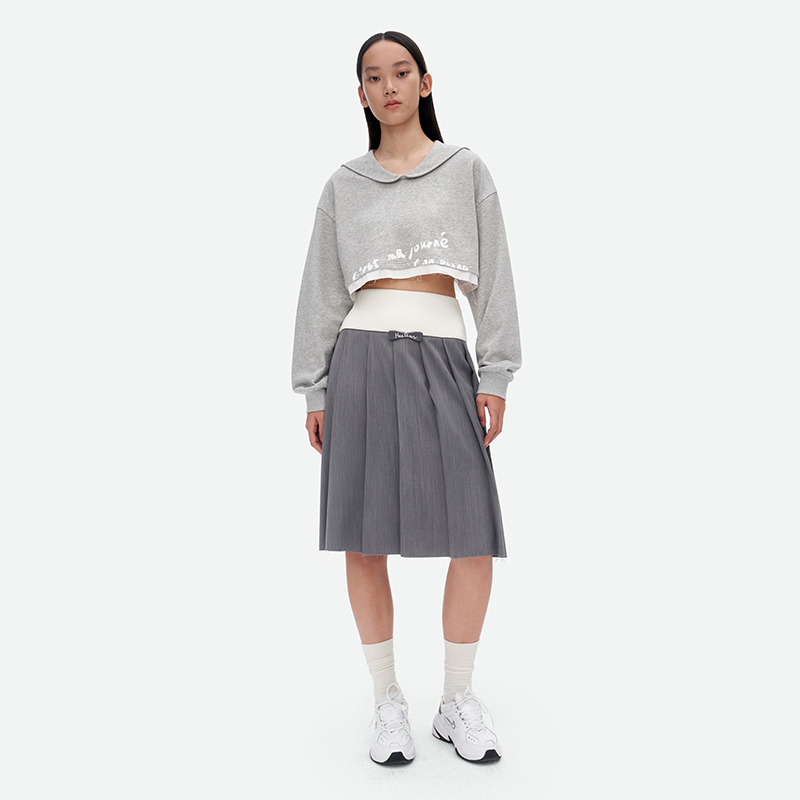 百褶裙中裙 毛边针织拼接灰色半身裙女款 HERLIAN 春夏