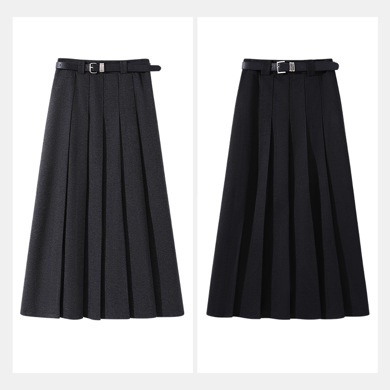 KCV真维斯灰色百褶裙女2025新款 a字半身裙高腰垂感百搭长裙 秋冬季