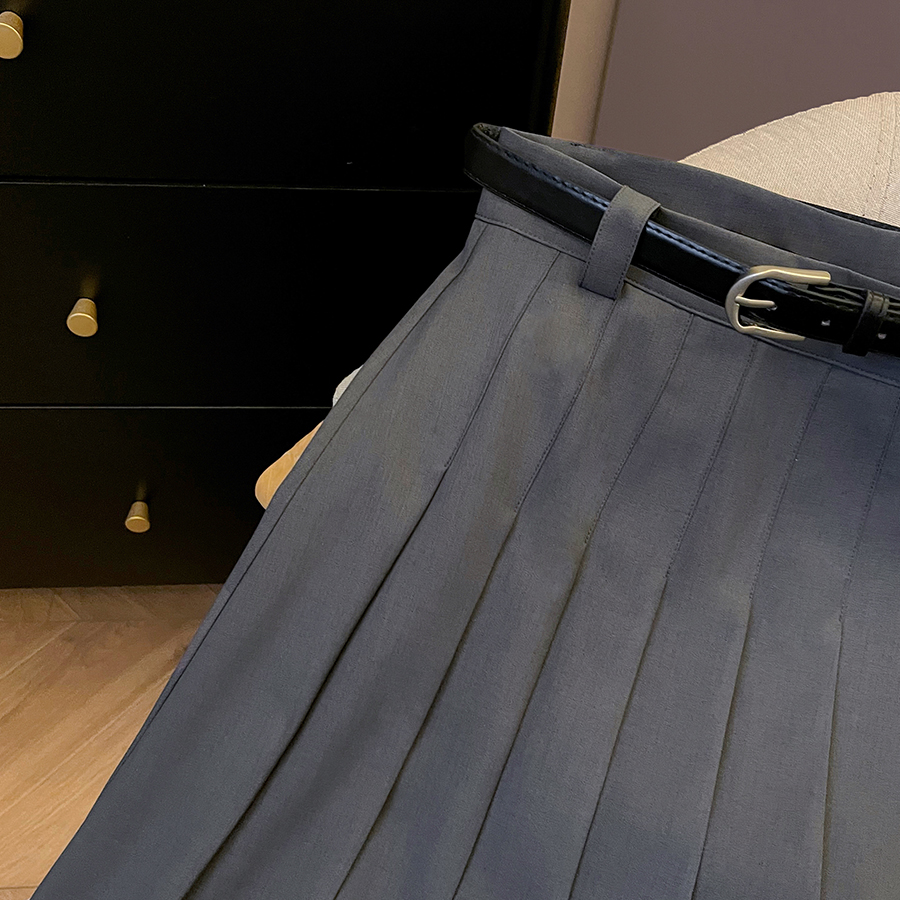 裙中长款 秋高腰a字裙西装 裙子 灰色百褶裙半身裙女2025新款 小C家