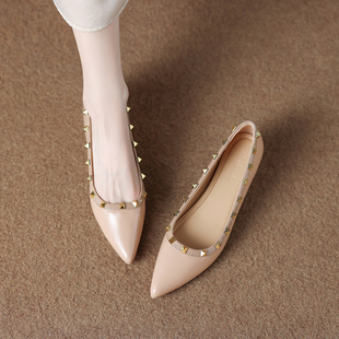 女款 休闲鞋 2025秋季 巨好看软底芭蕾浅口小皮鞋 子 新款 真皮白色单鞋